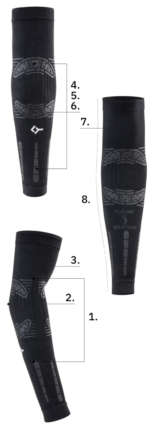 NO STRAIN es la primera funda biomecánica diseñada para reducir las vibraciones que causan inflamación y lesiones, sujetando y estabilizando el codo y el antebrazo.